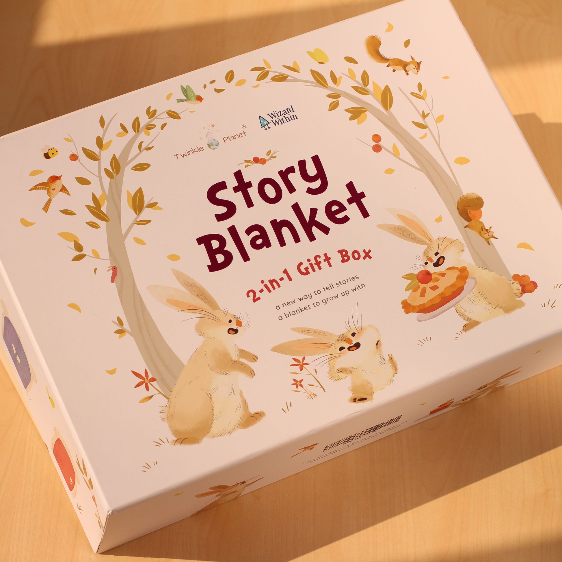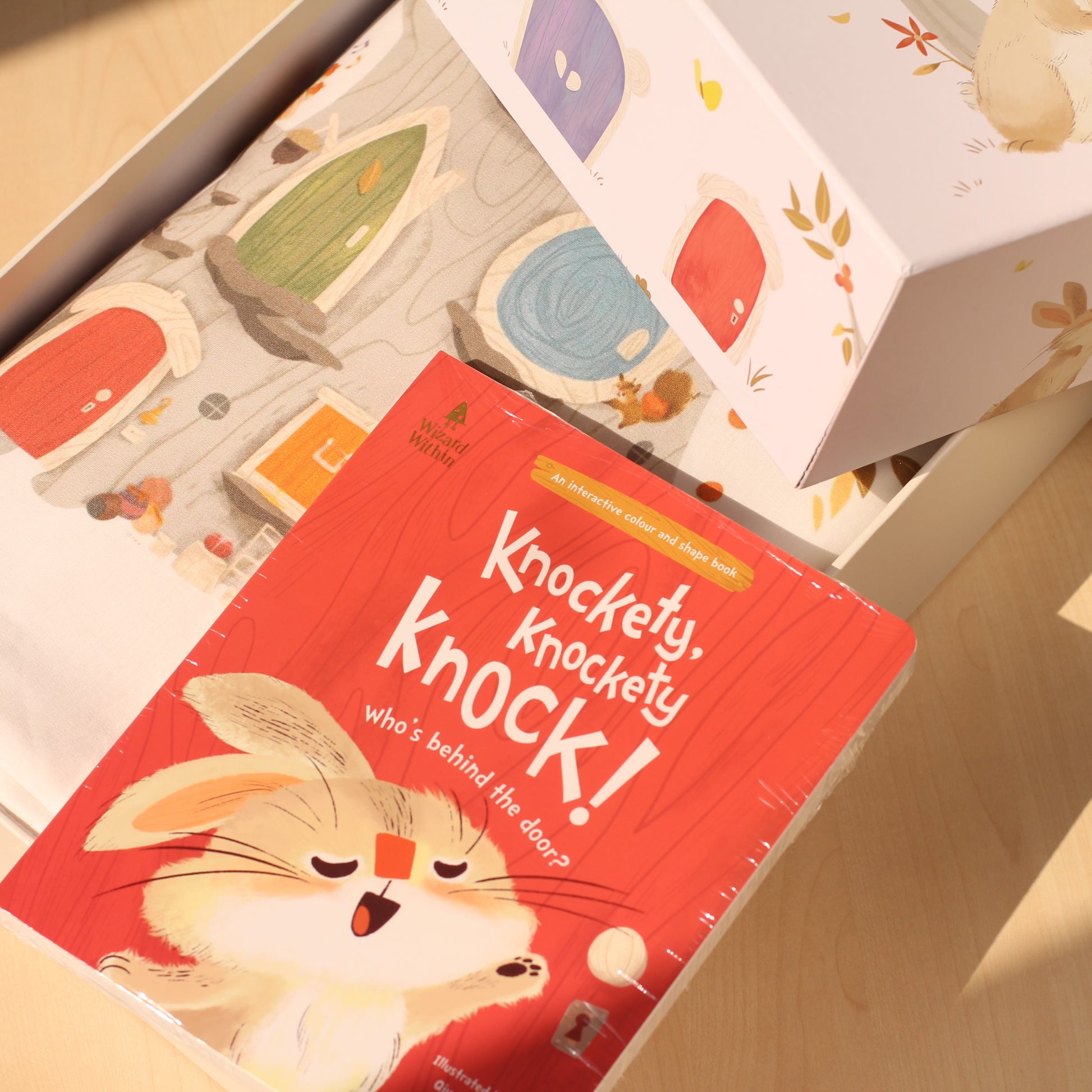 Featuring an exclusive, beautifully illustrated design by Wizard Within, the Story Blanket brings to life a magical take on the beloved rhyme Knockety Knockety Knock. Every detail invites little ones to imagine, dream, and create their own adventures — turning bedtime into a playful, interactive storytelling experience.